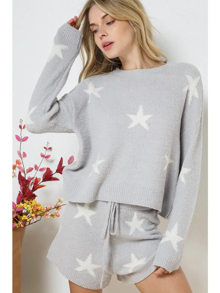 Soft Long Sleeve Star Print Top & Short Set | Heather Grey
